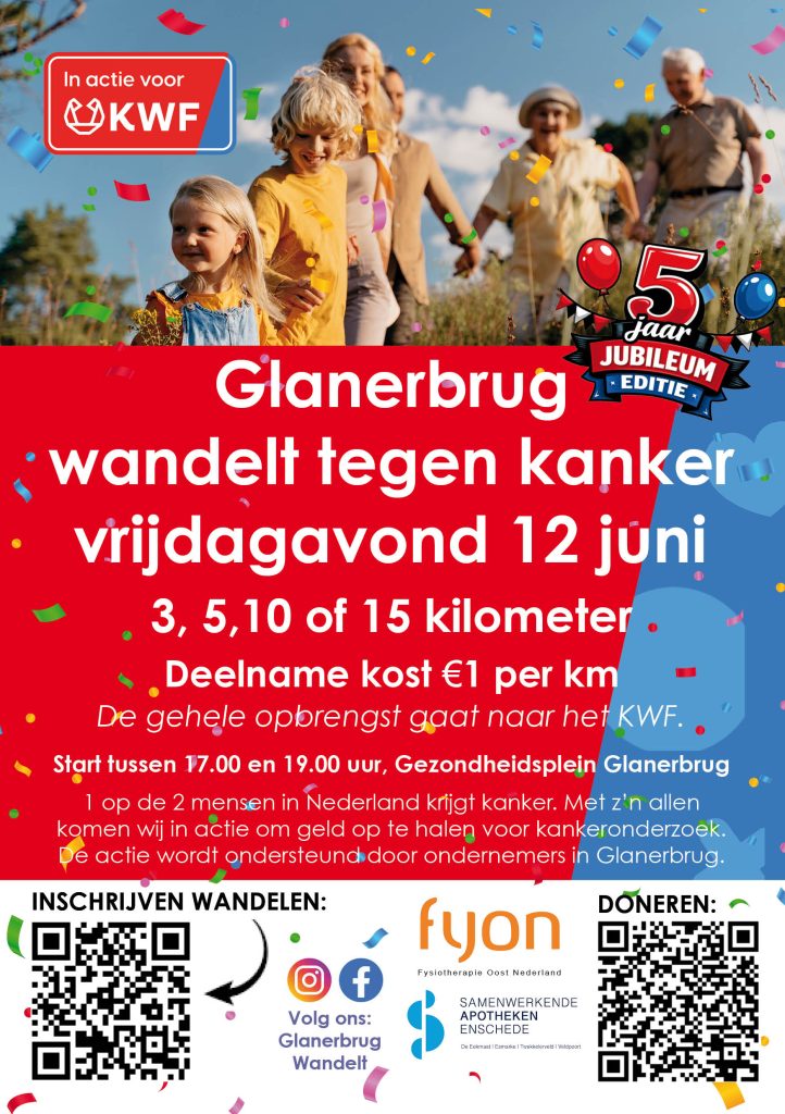 Op vrijdag 12 juni vindt voor de vijfde keer Glanerbrug wandelt tegen kanker plaats. Wat begon als een lokaal initiatief is inmiddels uitgegroeid tot een evenement waar wandelaars uit heel...