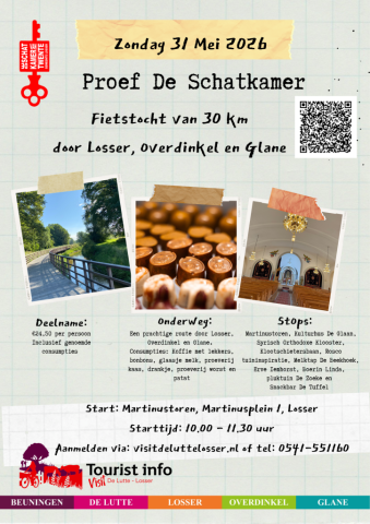 Stap op de fiets en ontdek de verborgen parels van Twente tijdens de bijzondere ‘Proef de Schatkamer Fietstocht’. Deze verrassende route combineert natuur, cultuur en streekproducten en belooft een wel heel speciale beleving. Deze fietstocht wordt georganiseerd door Tourist Info De Lutte-Losser.