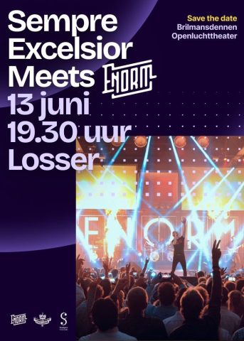 Met Sempre Excelsior meets ENORM krijgt het publiek zaterdagavond 13 juni een unieke kruisbestuiving te horen tussen harmoniemuziek en rock, in de openlucht van het theater Brilmansdennen.