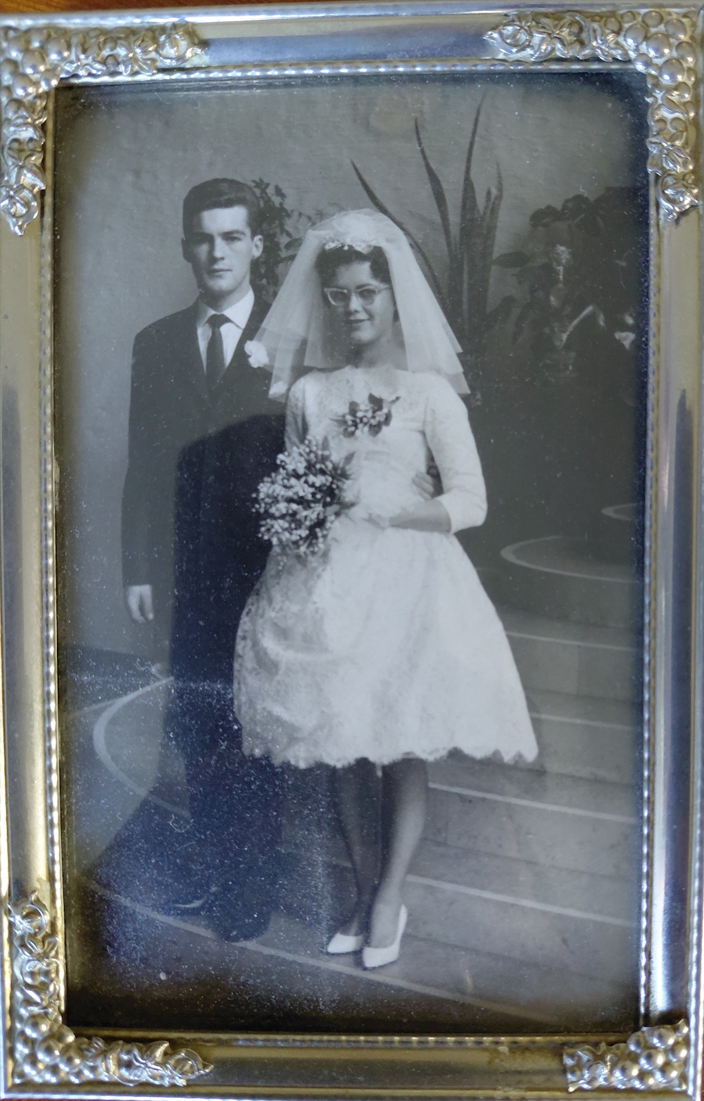 Sien van Schaik (86) en Teun Hovestad (86) traden 65 jaar geleden in het huwelijk. Ze woonden beiden in Enschede. Zij werkte in de toenmalige confectie bij Olland aan de Kuipersdijk en hij was stukadoor in de bouw. Ze hadden 7 jaar verkering gehad en ze leerden elkaar kennen op hun 14e levensjaar. De bruiloft werd gevierd bij partycentrum Vrieler in Enschede. Ruim 240 personen waren te gast en de muziek werd verzorgd door Frits Stein. Ze kochten een huis in Usselo.