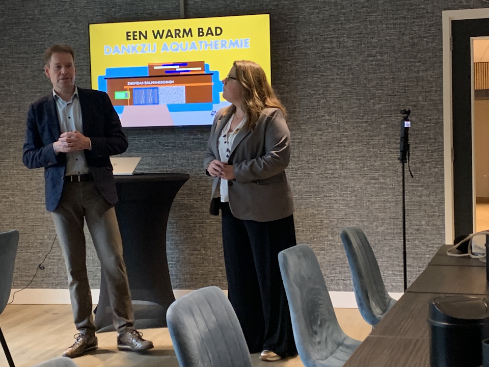 Vanmiddag is in Losser de nieuwe aquathermie-installatie van zwembad Brilmansdennen officieel in gebruik genomen. In werkelijkheid draait de installatie al sinds half oktober. Tijdens een korte bijeenkomst op het zwembad verrichtten wethouder Jan Engels en Ellen Hemmers van waterschap Vechtstromen de opening. Daarna volgde uitleg over het installatieproces en werd het opleveringsdocument ondertekend. De bijeenkomst eindigde met een toast.