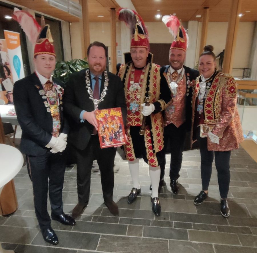 Onder het toeziend oog van een bont gezelschap, uiteraard bestaande uit Prins Tom I, zijn adjudanten Wilbert en Sem en hofchauffeusse Elsemiek, met daarnaast ereleden, Prinsencollege, het bestuur van de Gaffel Aöskes, medewerker Kabinetszaken en PR-commissie is het nieuwe carnavalsmagazine van Losser, ’t Gaffel Aöske, officieel aangeboden aan burgemeester Jeroen Diepemaat. De overhandiging vond plaats op maandagavond 26 januari in het gemeentehuis, ’t Lossers Hoes, alwaar iedereen werd ontvangen door burgemeester Diepemaat en wethouder Marian Oosterbroek.