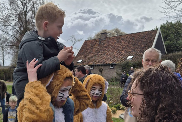 Op eerste Paasdag was het een vrolijke bedoening op de Bleek. Er waren meer dan 100 eieren verstopt door de scouting Dr. Ariënsgroep. Vol enthousiasme zochten heel veel kinderen samen met de Paashazen naar de eieren. Natuurlijk werden de kinderen aangemoedigd door papa’s en mama’s, opa’s en oma’s en andere familie leden. Er waren op elk veld speciale zilveren eieren verstopt. Het was dit jaar extra spannend omdat het allerlaatste ei dat nog niet gevonden was, een prijs ei was! Gelukkig lukte het Liam dit ei te vinden.