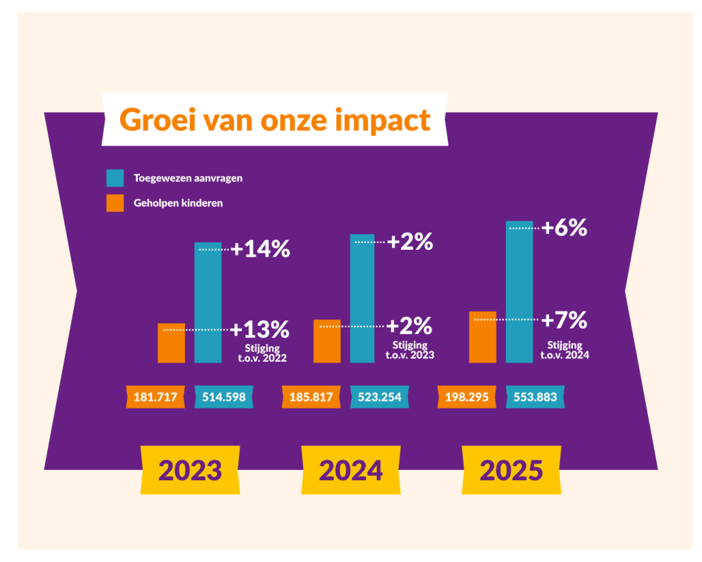 In 2025 ondersteunde Leergeld bijna 200.000 kinderen die opgroeien in gezinnen met geldzorgen. Dat is 7% meer dan het jaar daarvoor. Via de 113 Leergeldstichtingen kregen kinderen ondersteuning op het gebied van onderwijs, sport, cultuur en welzijn. Deze hulp is voor veel gezinnen essentieel om hun kinderen te laten meedoen op school en in de samenleving.