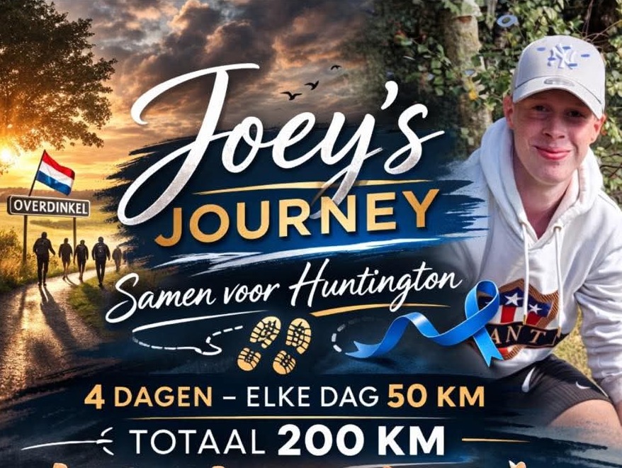 Joey Kruyshaar (21) uit Overdinkel zet zich deze zomer in voor een bijzonder persoonlijk doel. Binnen zijn familie speelt de erfelijke ziekte Huntington een ingrijpende rol. Met een eigen wandelactie wil hij meer bekendheid geven aan de ziekte én geld inzamelen voor verder onderzoek. Zijn motto: “Samen strijden tegen Huntington.”