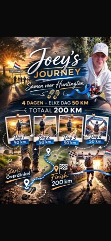 Bijzonder is dat zijn volledige tocht live te volgen zal zijn via TikTok. Via een livestream neemt Joey volgers mee onderweg, vertelt hij over de ziekte van Huntington en deelt hij zijn persoonlijke motivatie.