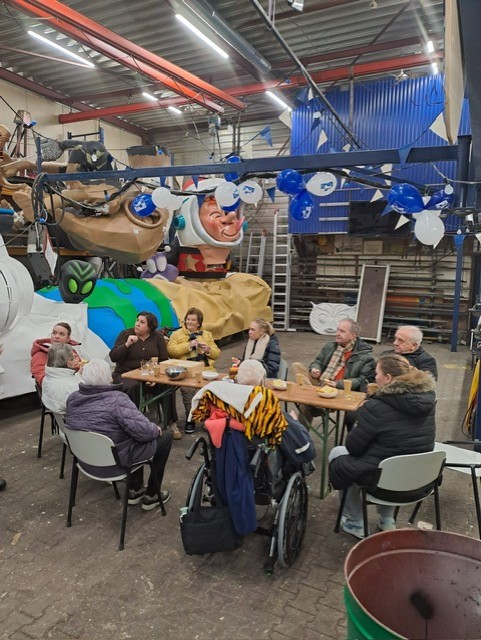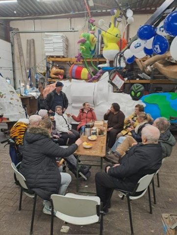 Op dinsdag 2 februari kwam er een groep bewoners van Zorggroep Sint Maarten met de elektrokar bij carnavalsvereniging de Nachtülkes uit Losser in de bouwloods kijken hoe de werkzaamheden er voor stonden. Onder het genot van een kopje koffie en een plak cake werd de wagen bewonderd en tevens werden de pruiken van de loopgroep even uitgeprobeerd door diverse bewoners. Ook mochten ze de pakken bekijken van de loopgroep. Ze waren het er unaniem over eens dat het een prachtig spektakel wordt. Na de tweede kop koffie gingen de bewoners weer naar huis met de elektrokar. Ze vonden het een gezellige ochtend.