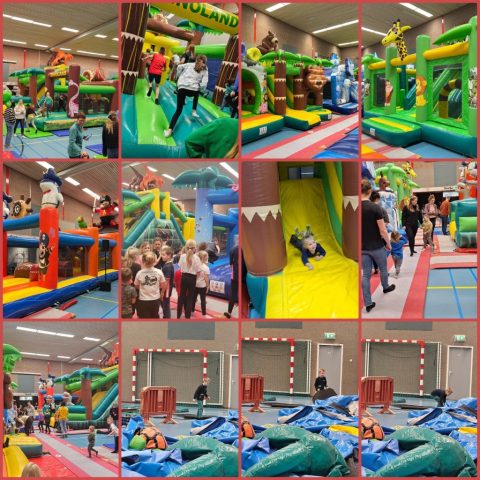 Het Springkussenfestival in Overdinkel mag met recht een groot succes worden genoemd. Twee dagen lang stond sporthal Overdinkel volledig in het teken van springen, lachen, rennen en… flink snacken. Maar liefst 305 kinderen genoten van eindeloos springplezier op de vele kleurrijke springkussens.