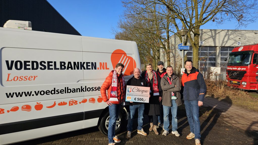 De Supportersvereniging FCT Losser heeft afgelopen zaterdag een cheque van € 500 overhandigd aan de Voedselbank Losser. Met deze financiële bijdrage wil de vereniging een belangrijk steentje bijdragen aan de ondersteuning van gezinnen in de gemeente Losser die het financieel moeilijk hebben.