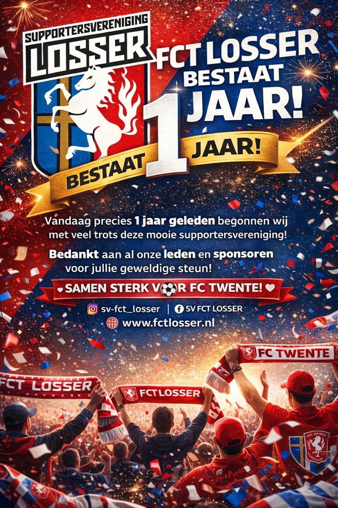 Wat begon als een idee van een groep betrokken FC Twente-supporters uit Losser en omgeving, is in één jaar tijd uitgegroeid tot een herkenbare en actieve supportersvereniging. Supportersvereniging FCT Losser heeft inmiddels een duidelijke plek veroverd binnen de Twente-familie én binnen de gemeente Losser.
