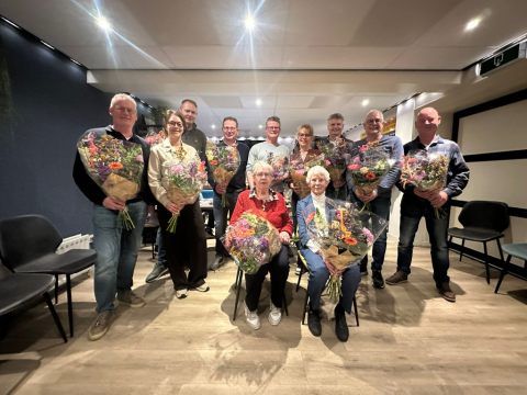 Een bijzonder moment vormde de huldiging van twaalf leden die hun 50-jarig lidmaatschap vierden. De vereniging feliciteerde Alie ter Burg, Ans Zwijnenberg, Theresia Korfage, Monique Velthuis, Richard Koehorst, Jeroen Roelofs, Marcel Bos, Rob Velthuis, Frank de Vries, Harold Koehorst, Ank van Rijkom en Willy Holtkamp met deze indrukwekkende mijlpaal. Daarnaast werden Harry Bakker en Robin Eulderink gehuldigd voor hun 25-jarig lidmaatschap.